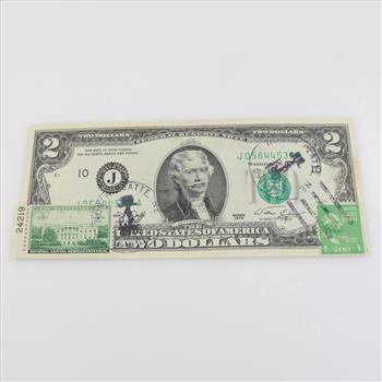 | Item: | 1976 US Federal Reserve Note 2 Dollars With US Stamps |
