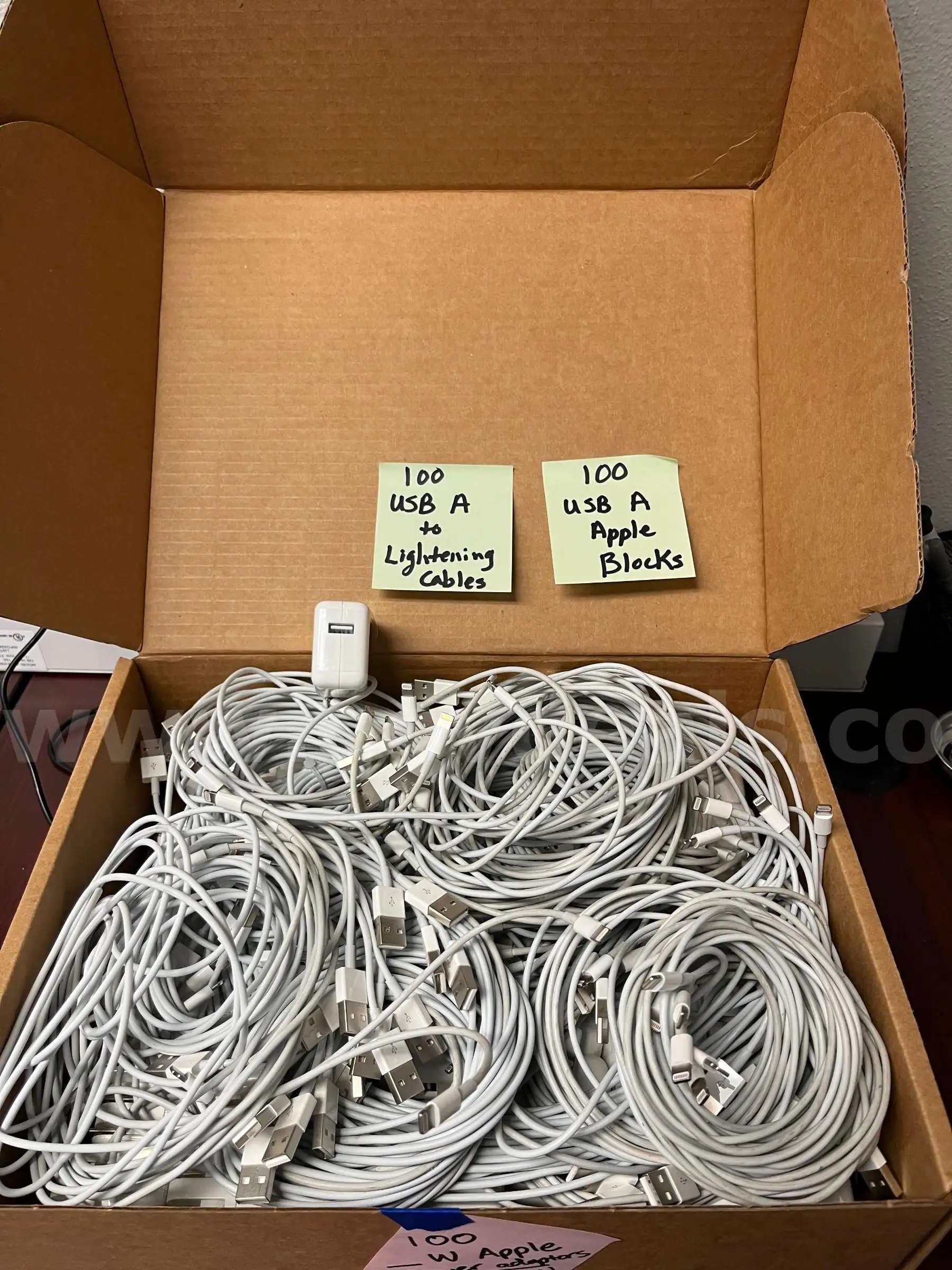 | Item: | Apple USB A to Lightning cable and blocks-Lot of Approx 100 Apple Brand |