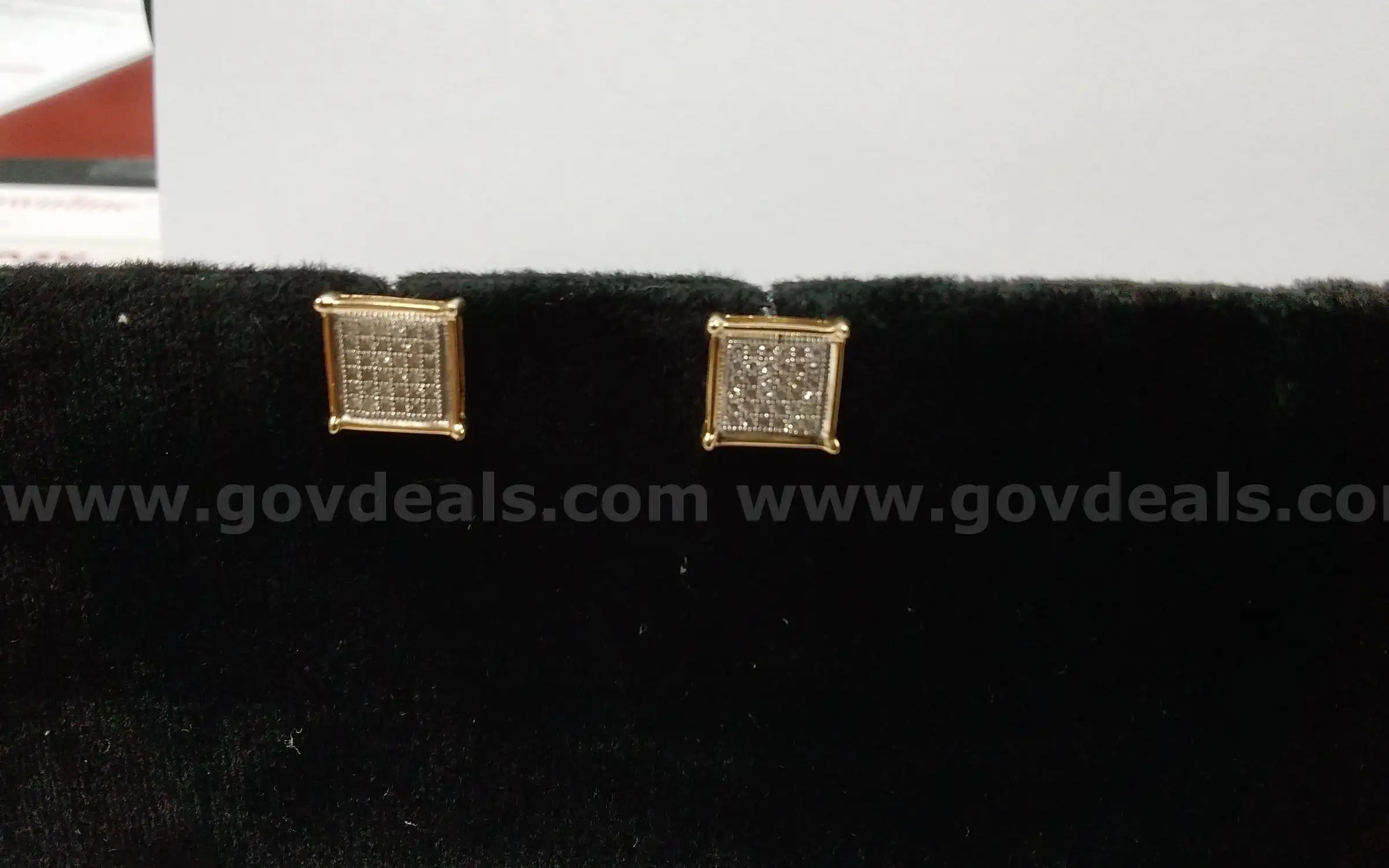 | Item: | One set of yellow colored earrings believed to be 10 Karat gold with clear stones (Chips) |