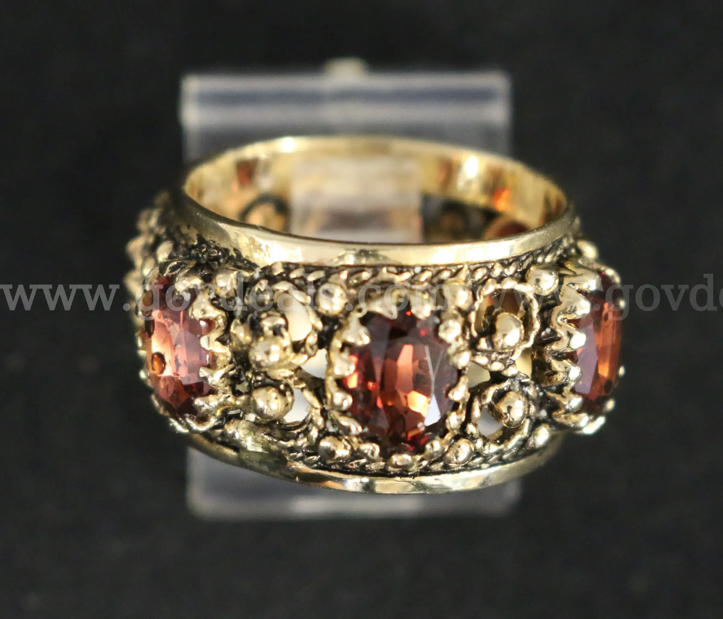 | Item: | 14K Yellow Gold Filigree Design Ring With Garnets 8.8 Grams |