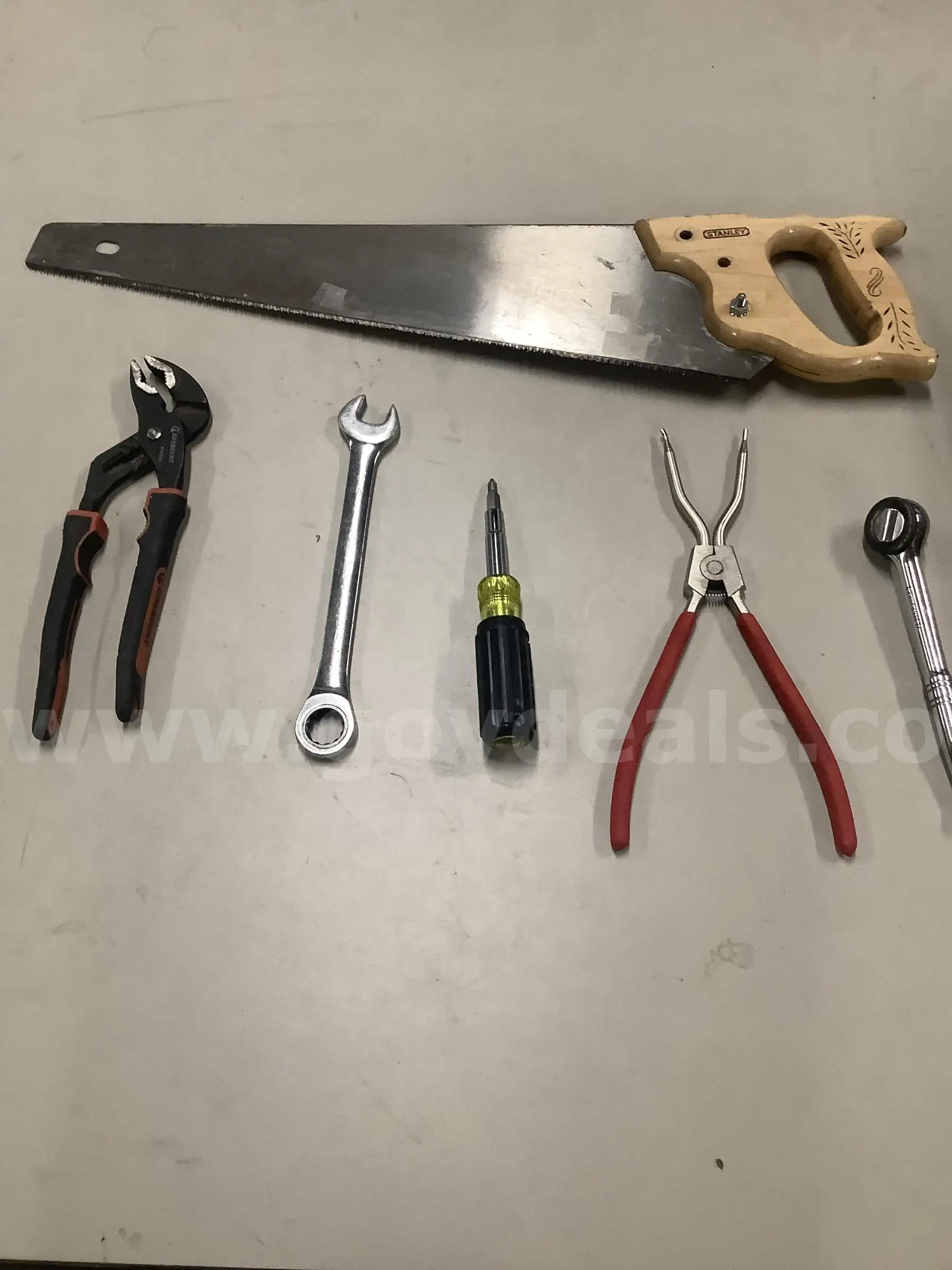 | Item: | Lot of misc box items-24 inch Stanley saw (ONE SCREW IS DETACHED) Husky 3 4 wrench multi bit screwdr |