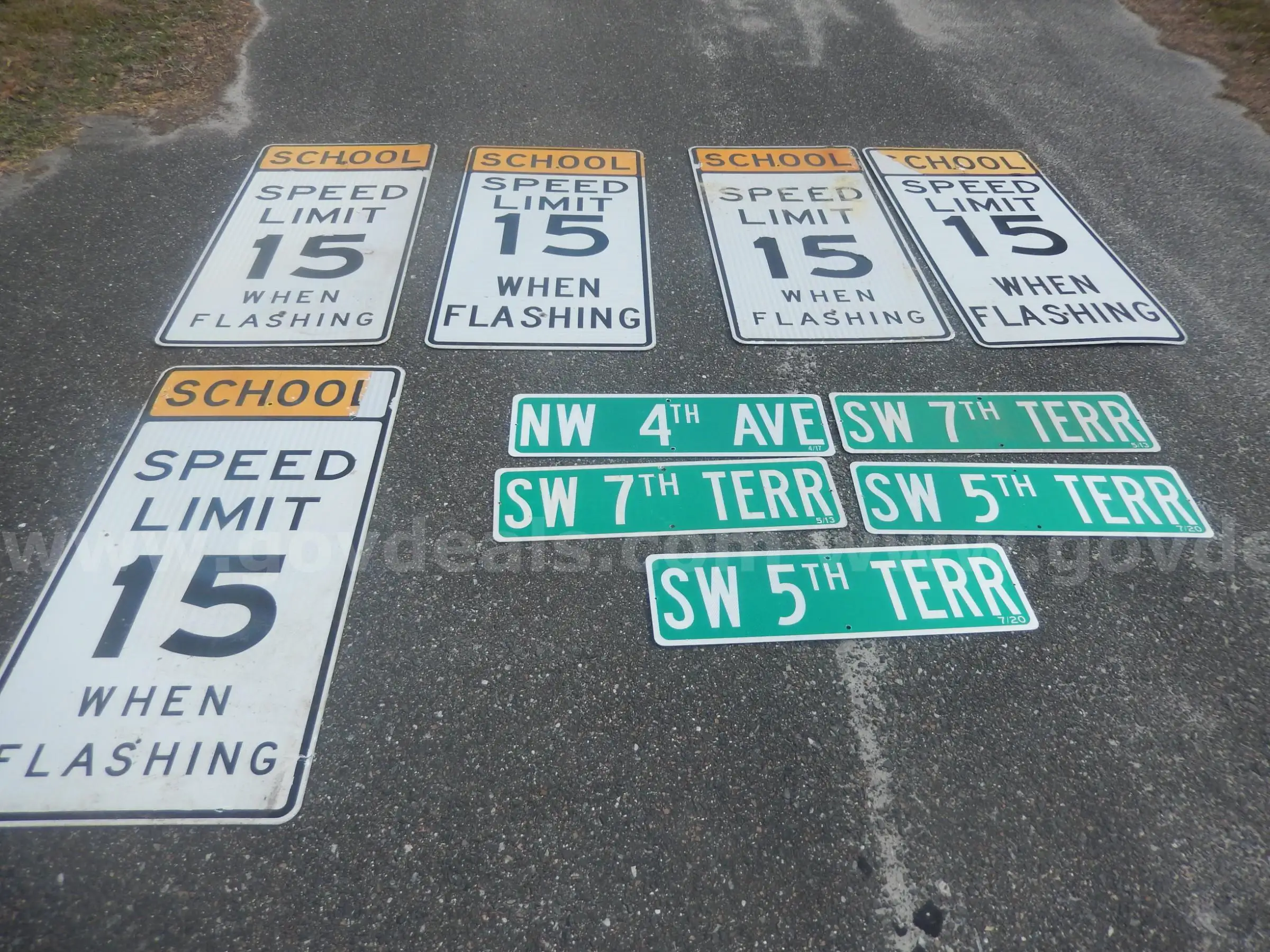 | Item: | USED (5) SCHOOL 15 SPEED LIMIT SIGNS (5) STREET SIGNS |