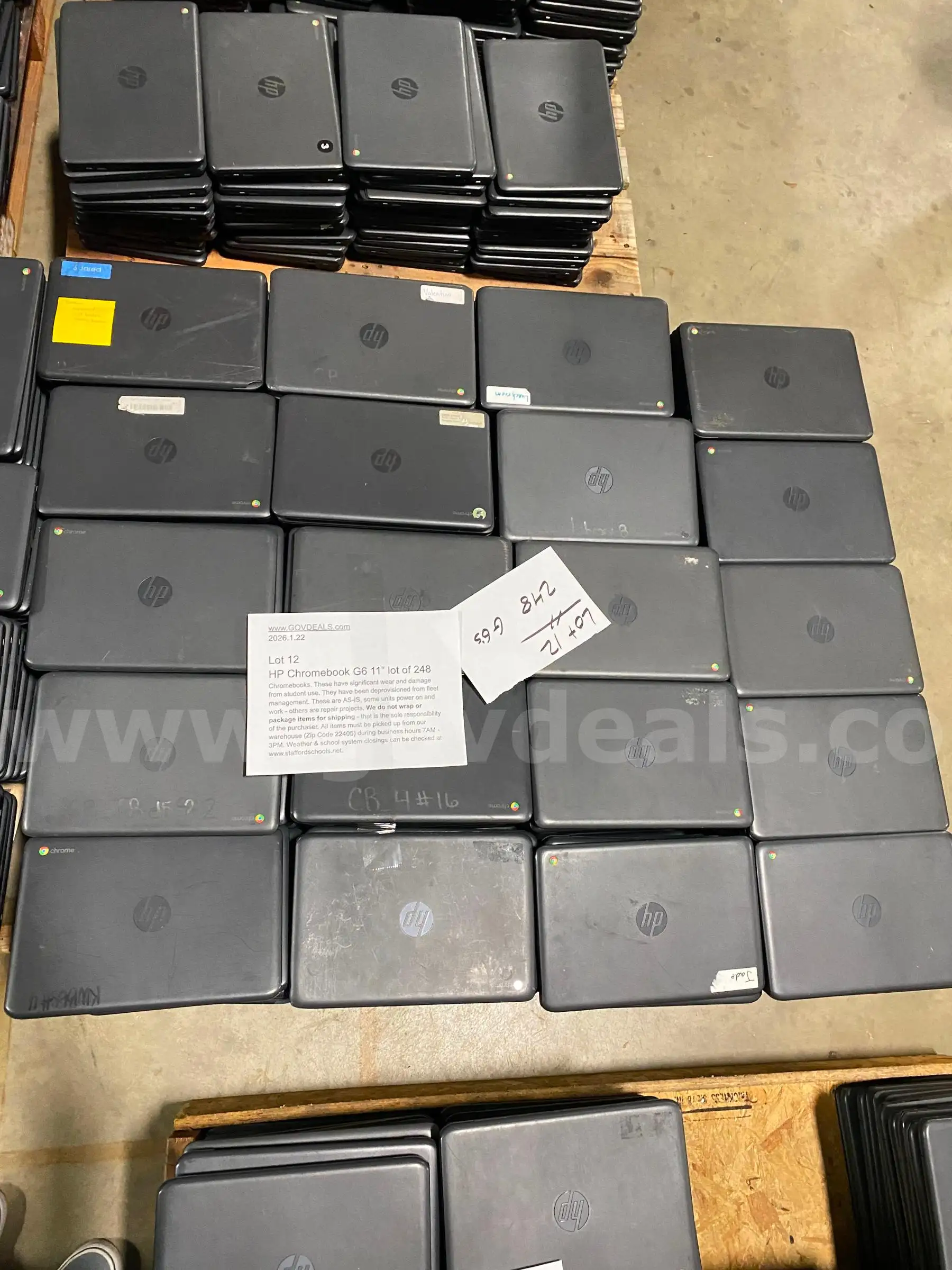 | Item: | Lot 12 QTY 248 HP 11 G6 Chromebooks |