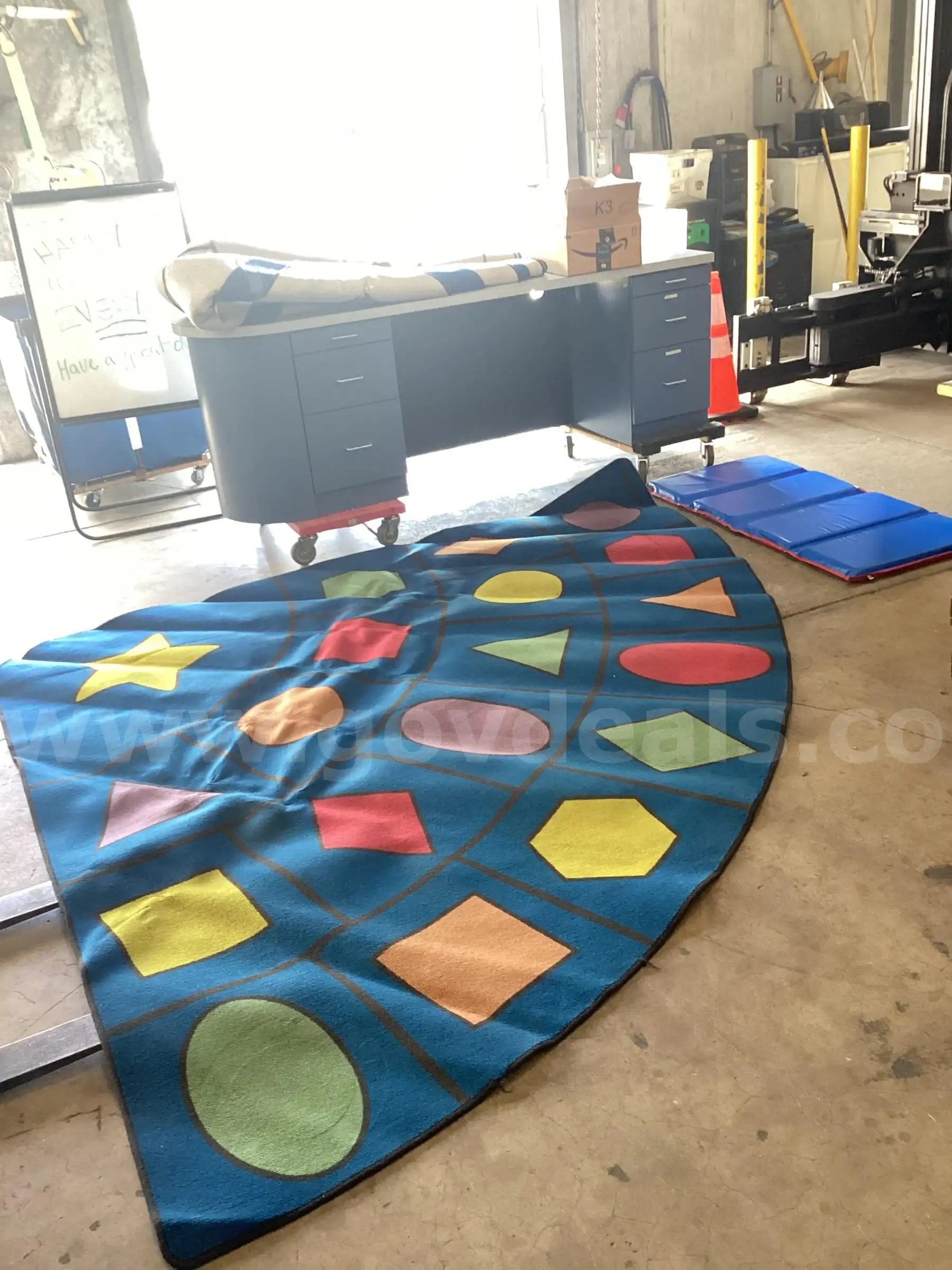 | Item: | COMBO DEAL USED 3 CLASSROOM FLOOR MATS + OFFICE CLASSROOM DESK + BOX OF ARTS SUPPLIES + 1 PREK MAT |