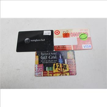 | Item: | 5 Gift Cards, Visa, Barnes, B&BW, Sunglass Hut |