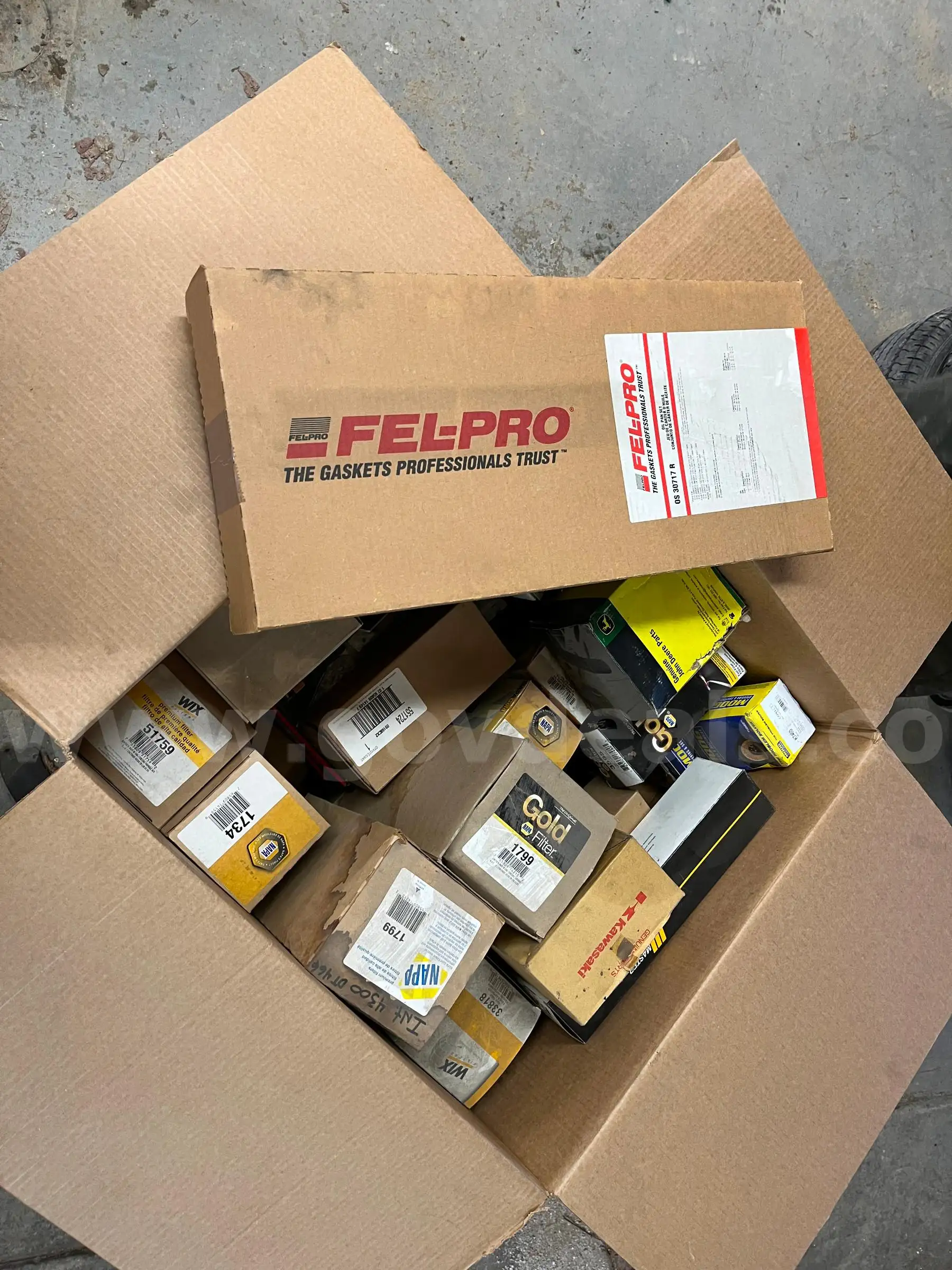 | Item: | Box of various oil filters fuel filters and other items |