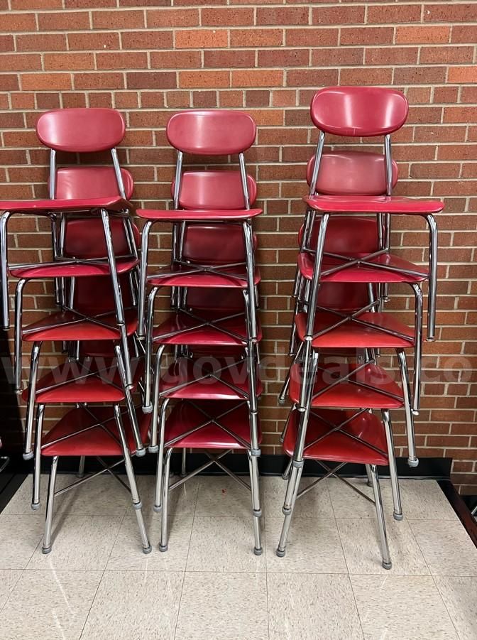 | Item: | Red Metal Chrome Frame Chairs x15 (3 out of 7) |