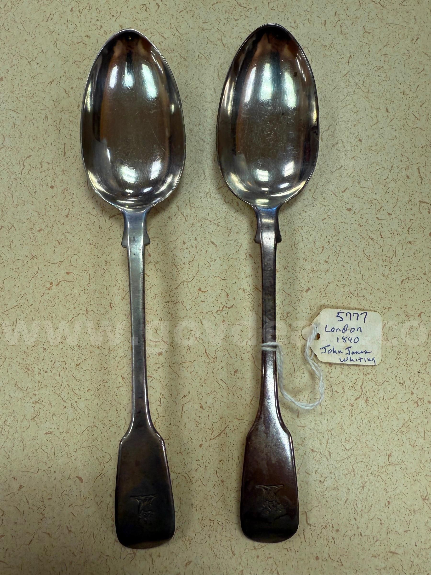 Item: | Two sterling silver serving spoons London 1840 John James Whiting 102 g |