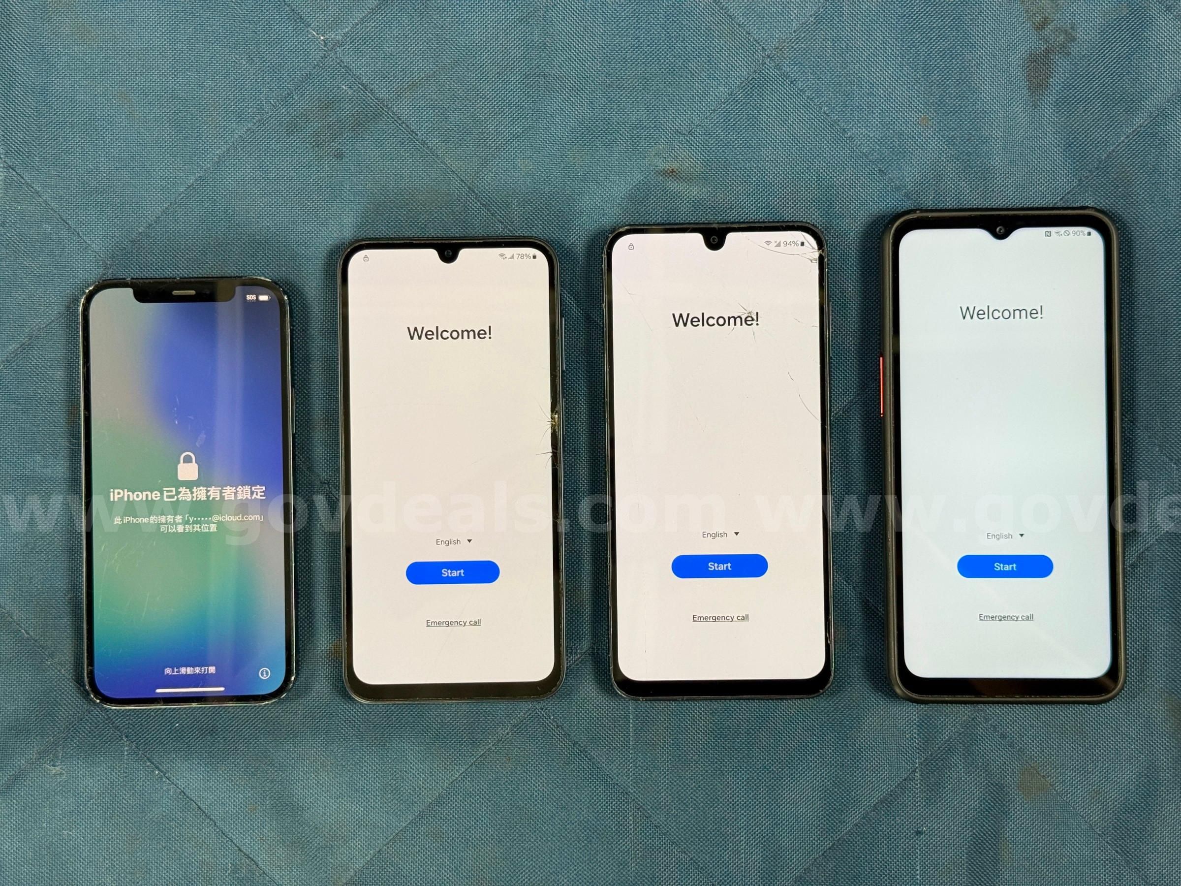 Item: | 4 - Cellphones (User Locked) 3 - Samsung and 1 - Apple (All Power On) |