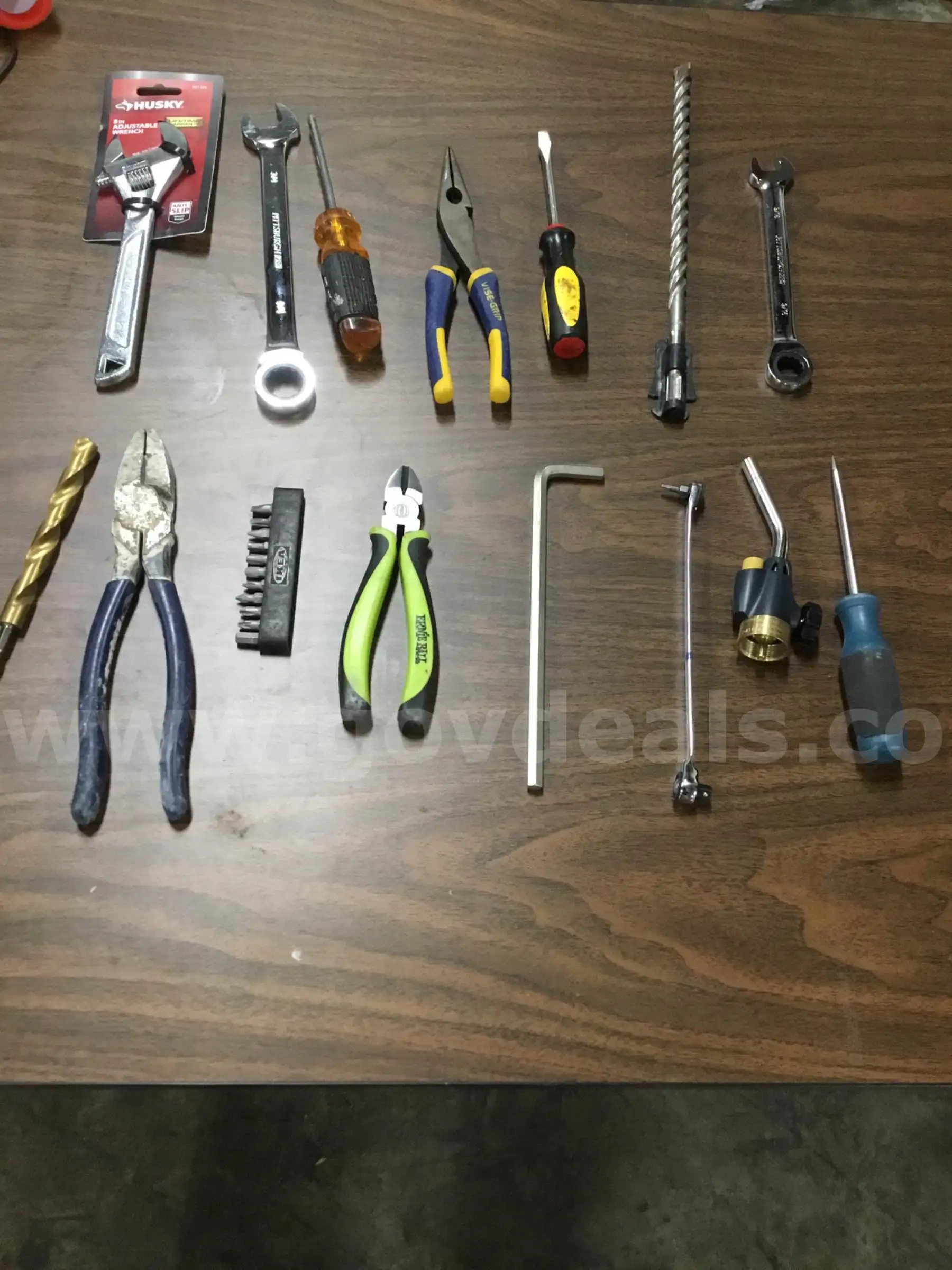 | Item: | Lot of misc tools-silver Husky 8 inch adjustable wrench “DH” |