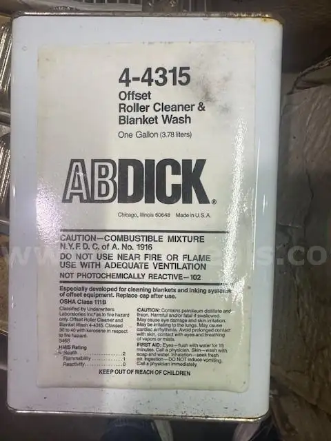 | Item: | 15 - ABDICK 4-4315 Blanket Wash & Roller Cleaner 1 Gallon |