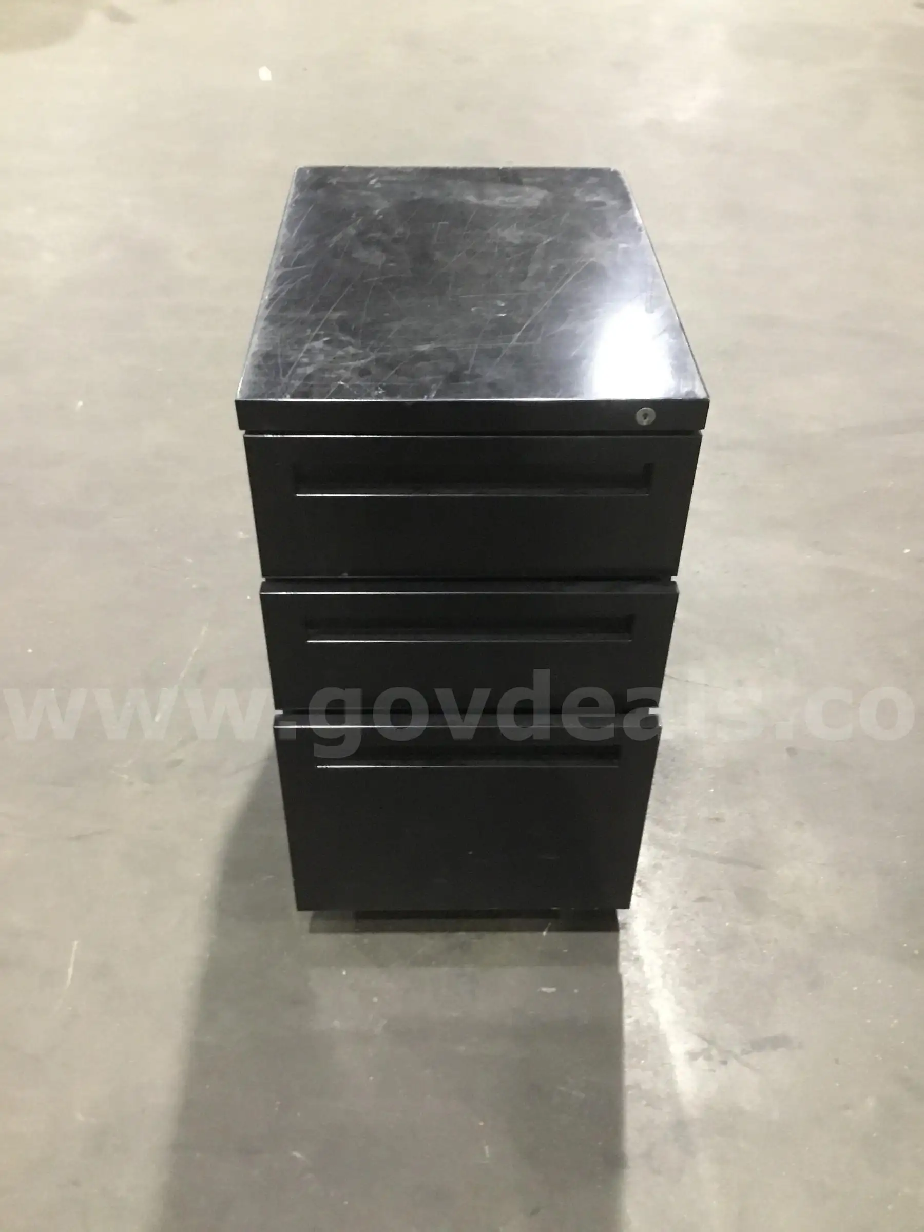| Item: | 21 1 2 (LENGTH) x 15 (WIDTH) x 25 (HEIGHT) black metal three drawer filing cabinet (NO KEY LOCKS) DH |