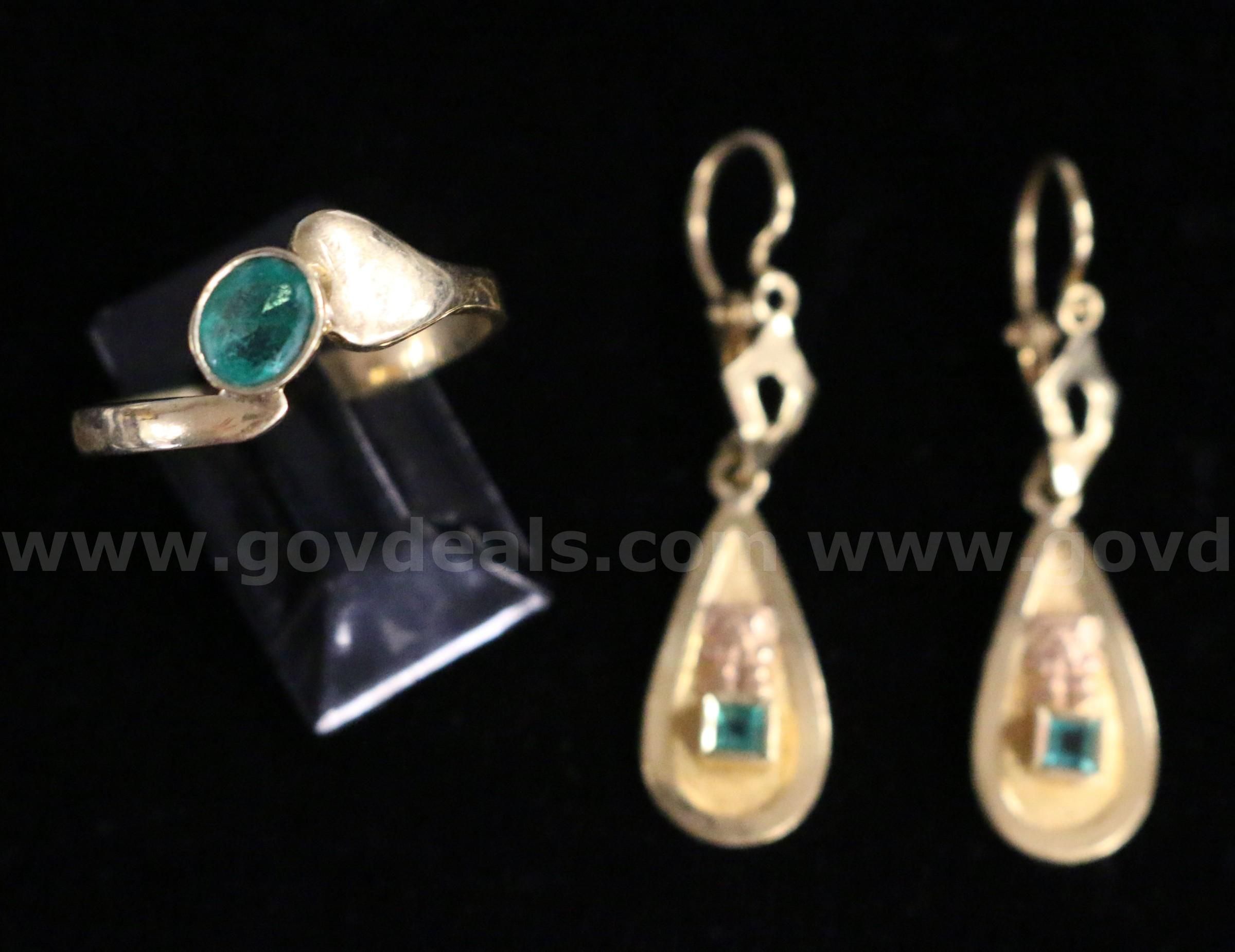 | Item: | 18k Yellow Gold Ring and Earrings with Emeralds 5.3 Grams Total |