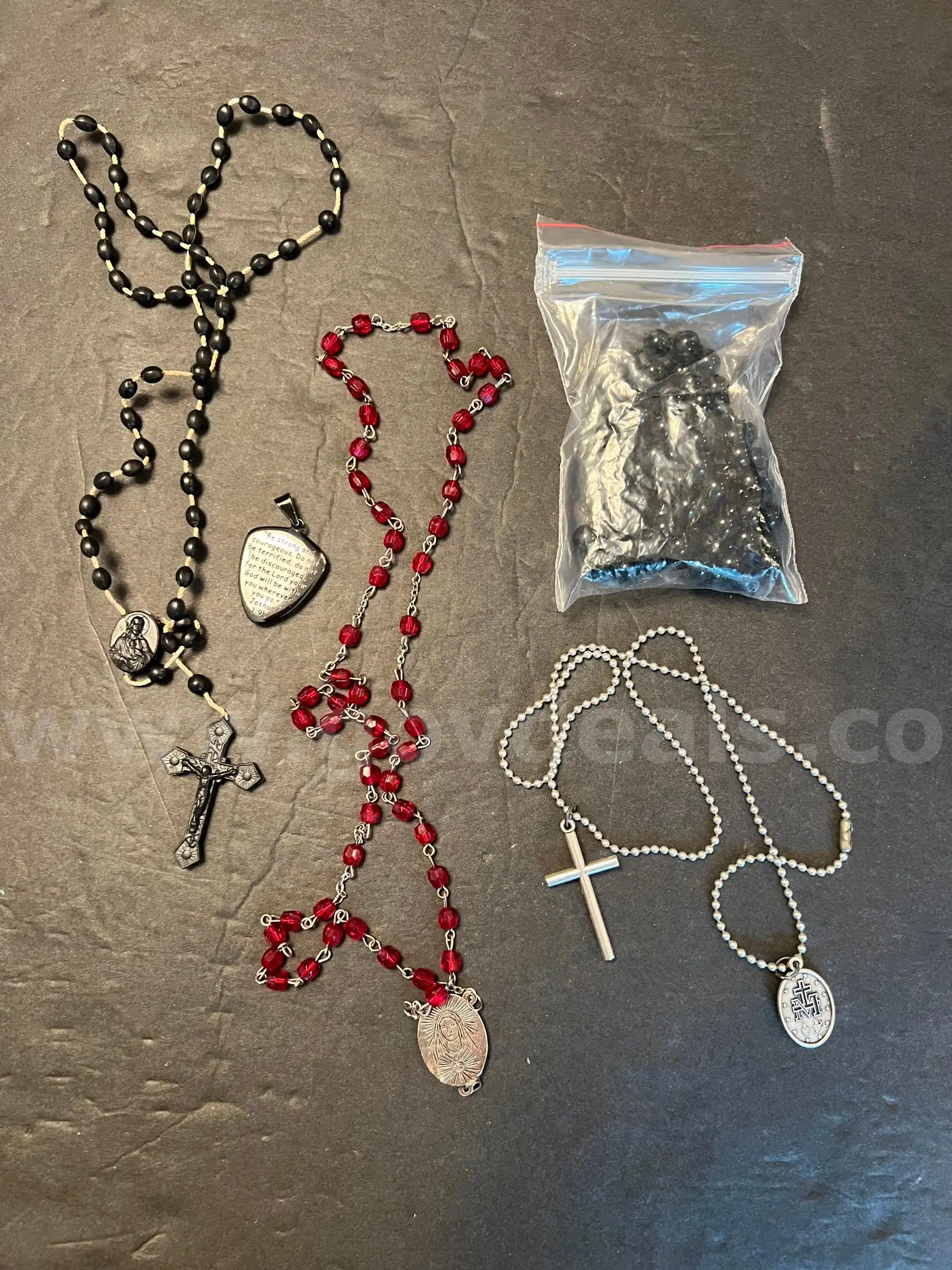 | Item: | Misc. Religious Jewelry Includes Rosaries & Pendant with Engraved Verse |