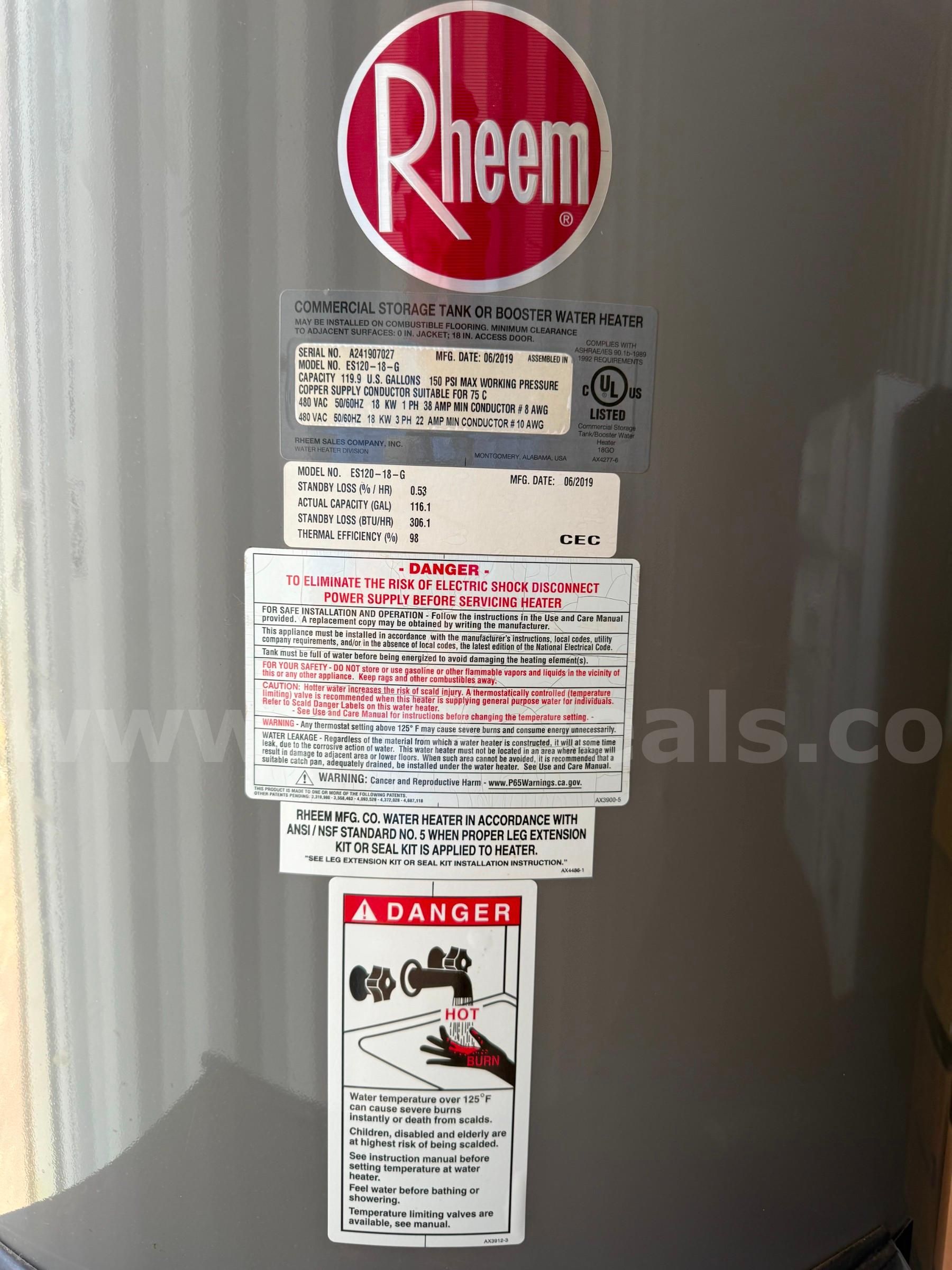 | Item: | Rheem Commercial Hot Water Heater |