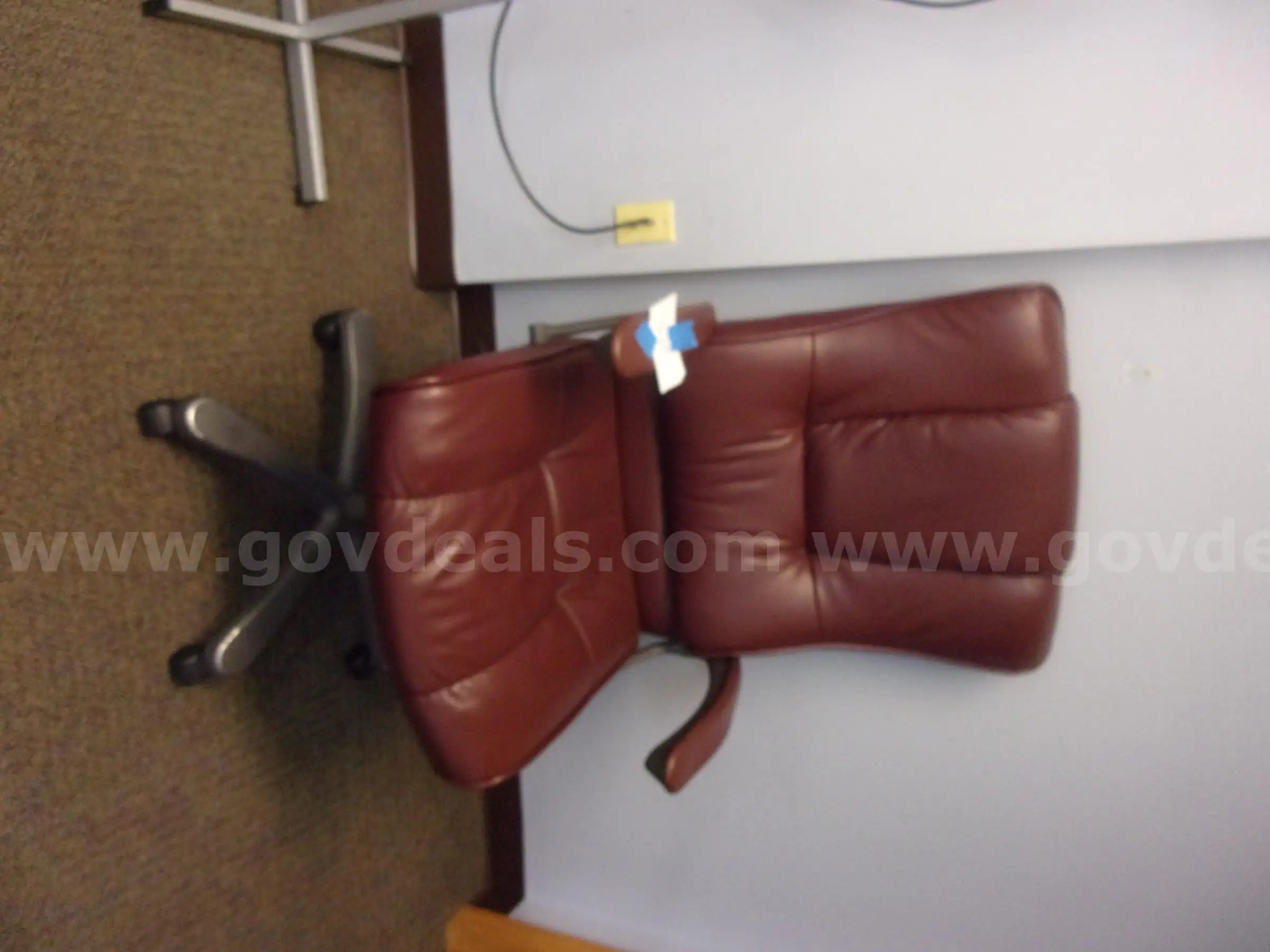 | Item: | One rolling red leather chair |