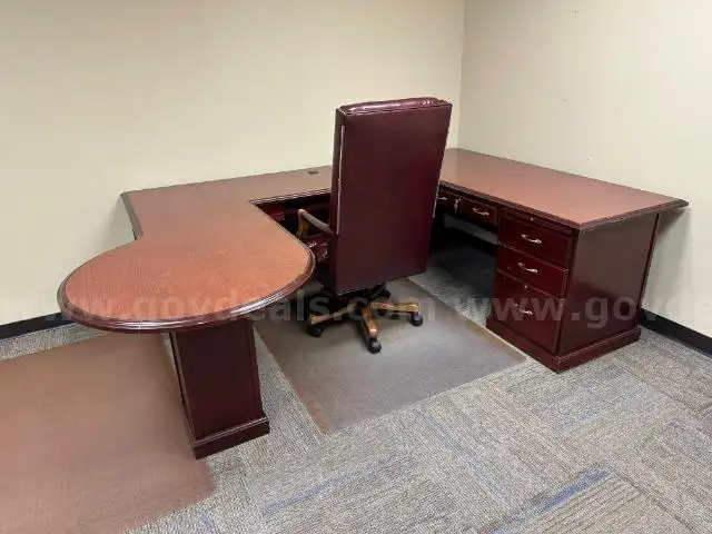 | Item: | Lot of (1) Wood Executive L Desk and (1) Executive Chair. |