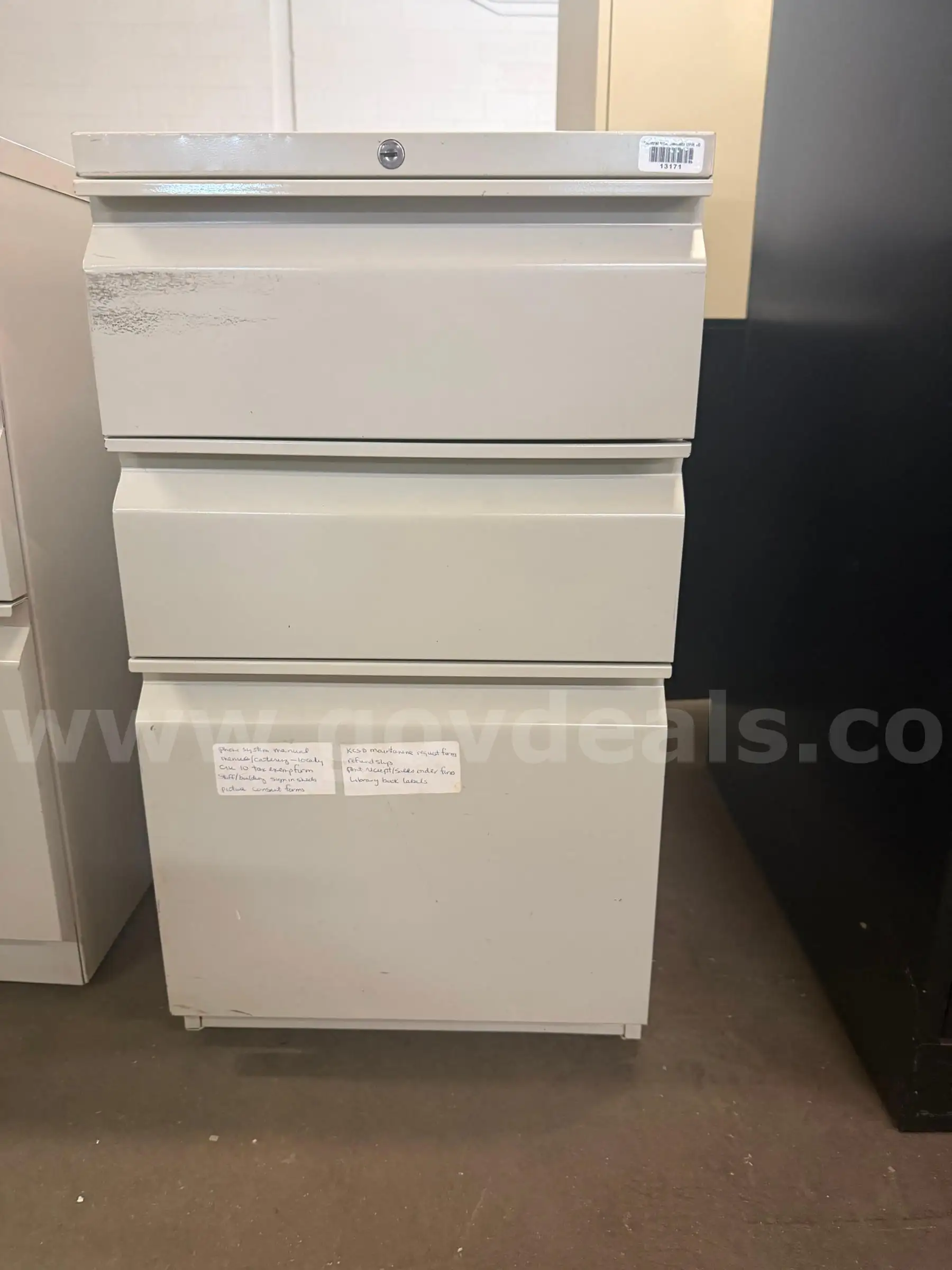 | Item: | 3 DRAWER METAL FILING CABINET ON WHEELS IN LIGHT GRAY - QTY 1 |