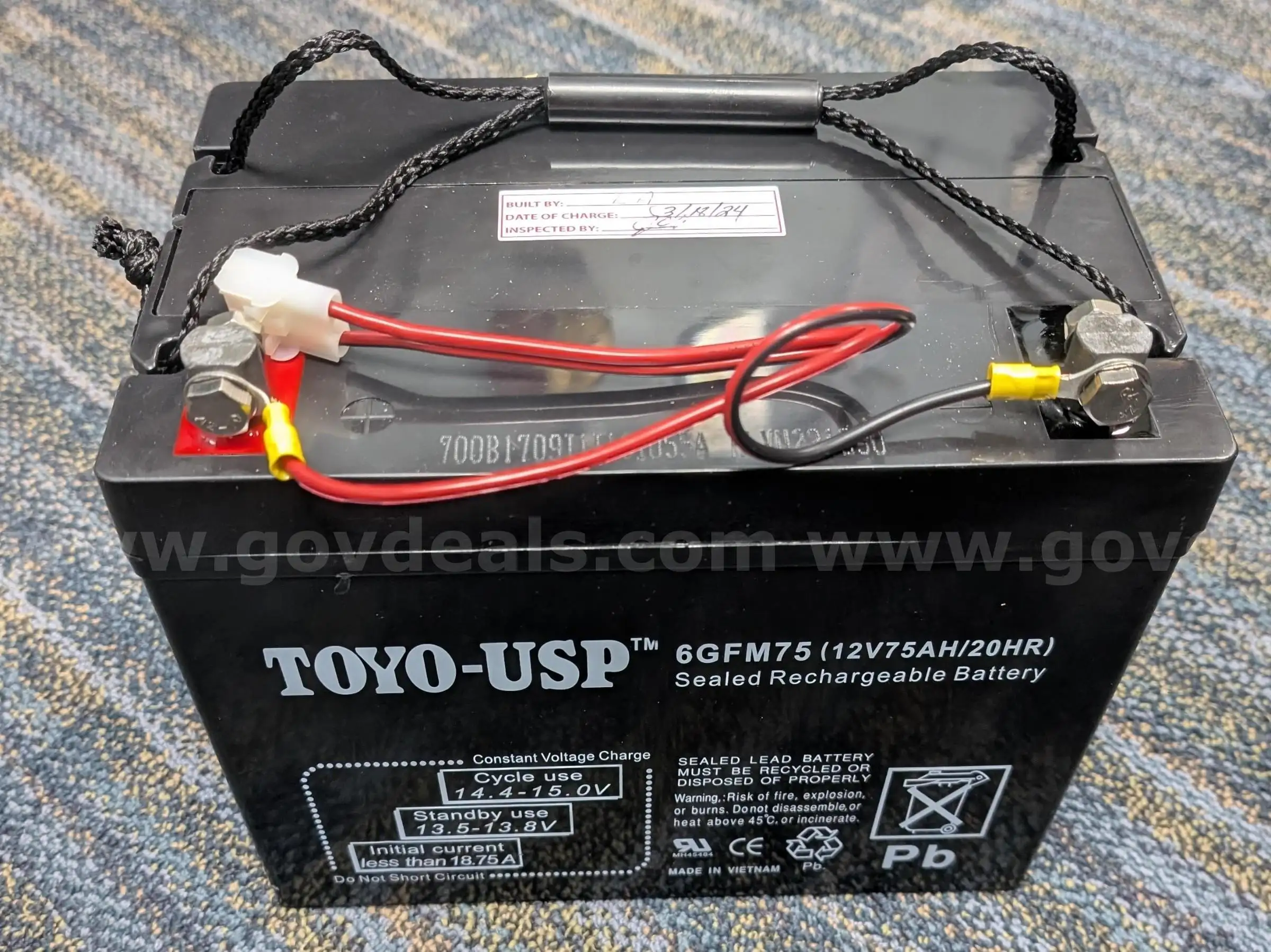 | Item: | TOYO-USP Sealed Valve Regulated Rechargeable Battery 6GFM75(12V75 AH) NEW |