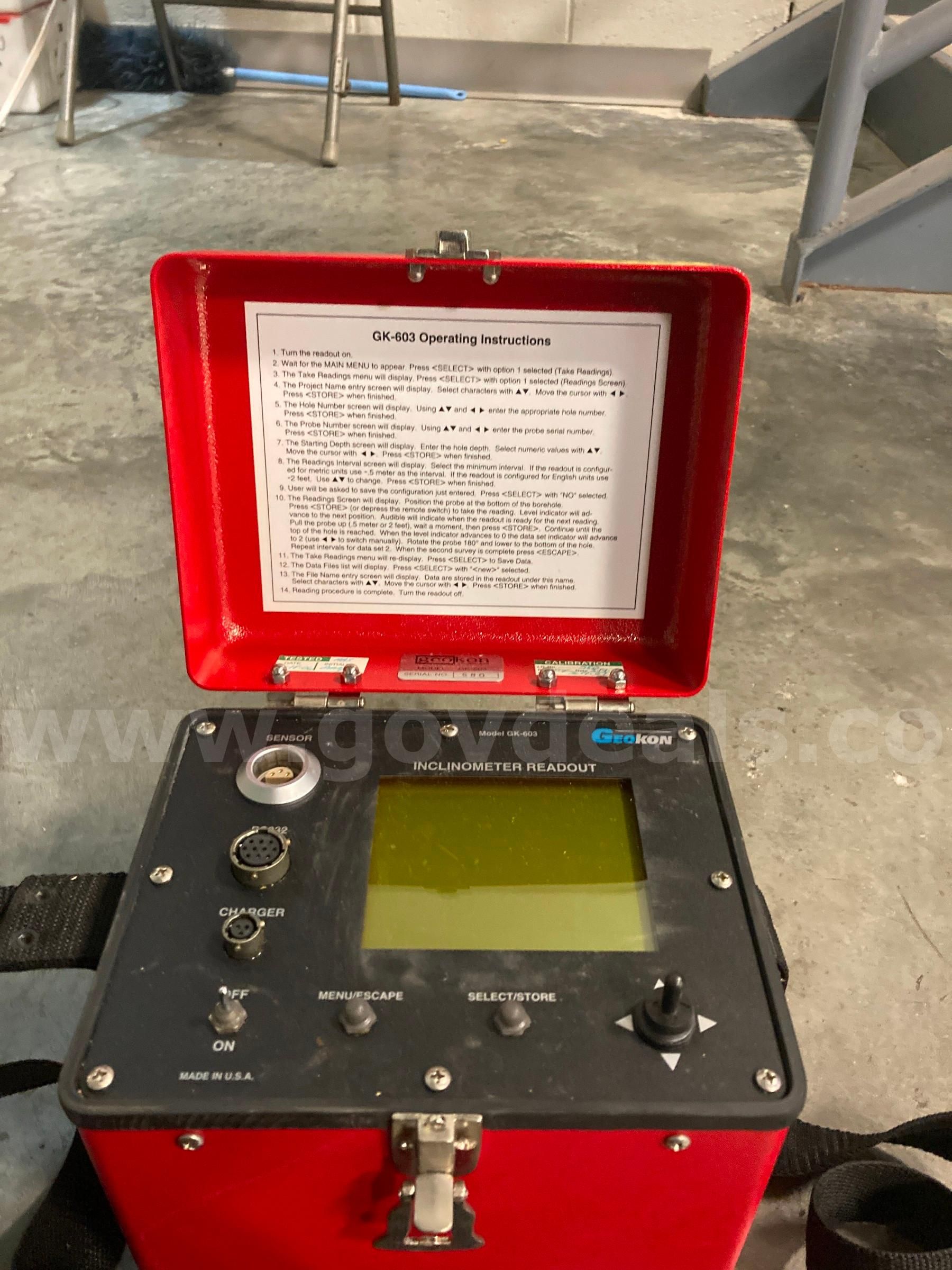| Item: | (1) GEOKON Slope Indicator with 118Ft cable Serial N No. 580 Model GK603. |