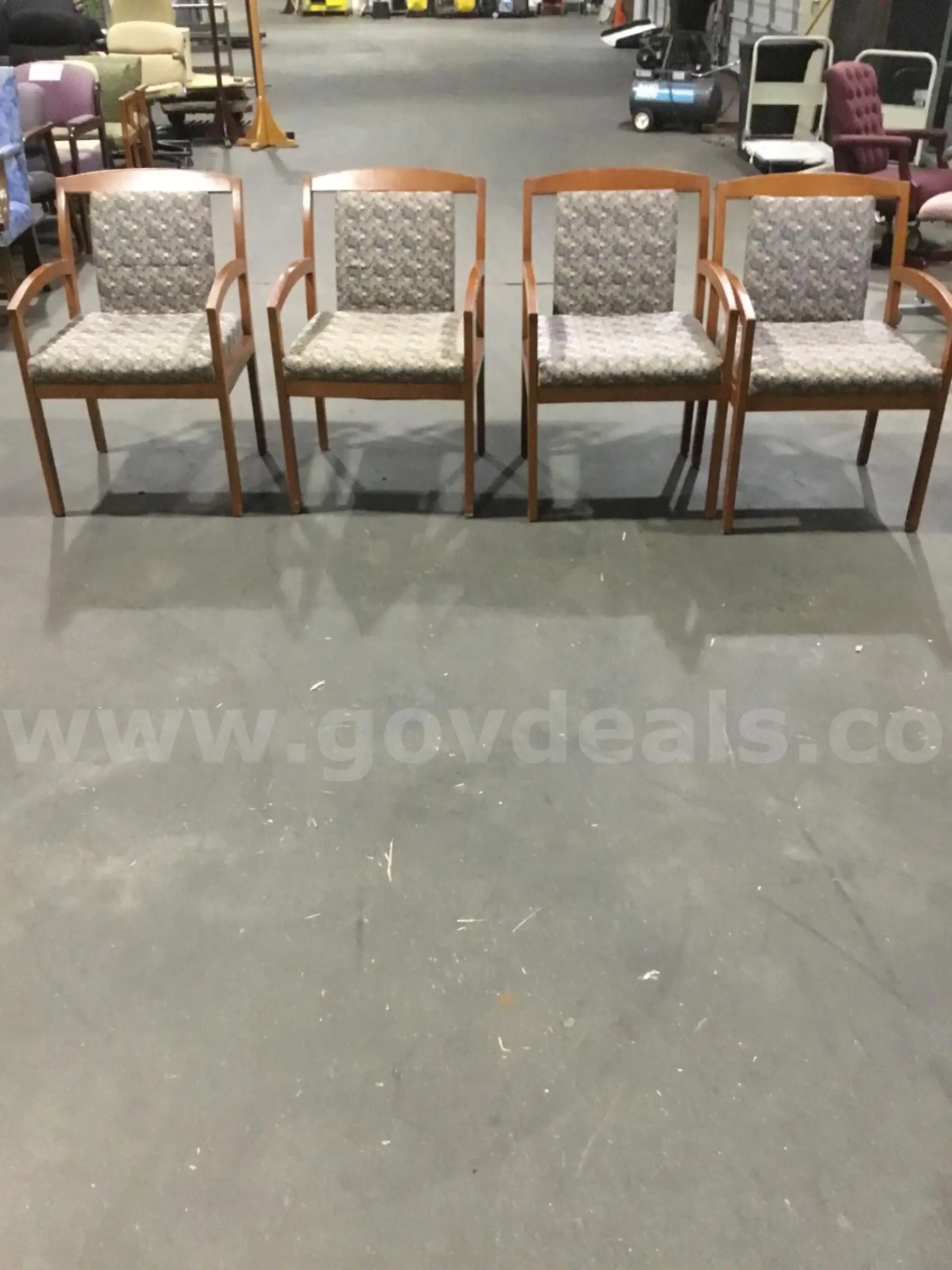 | Item: | 4 multi color guest chairs brown hardwood armrests “DH” |