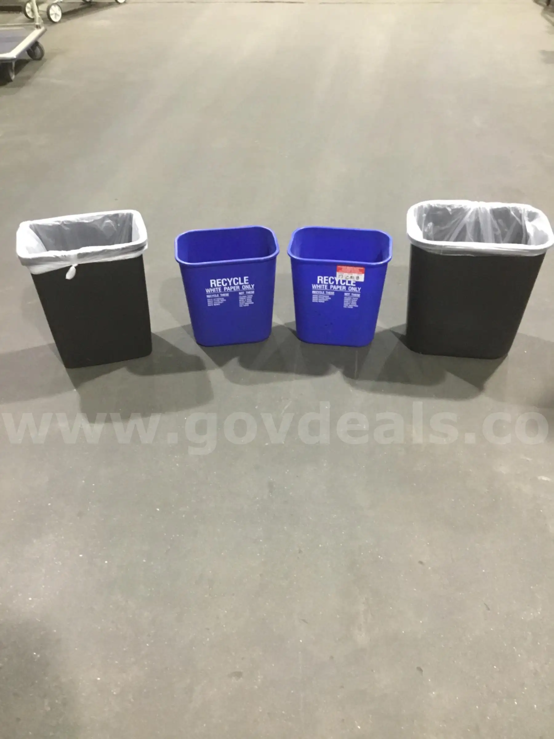 | Item: | 2 blue & 2 black trash cans “DH” |