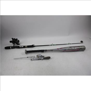 Item: | Zebco Rhino PS05 Fishing Pole, Easton Baseball Bat Pink/Silver, And More, 3 Pieces |