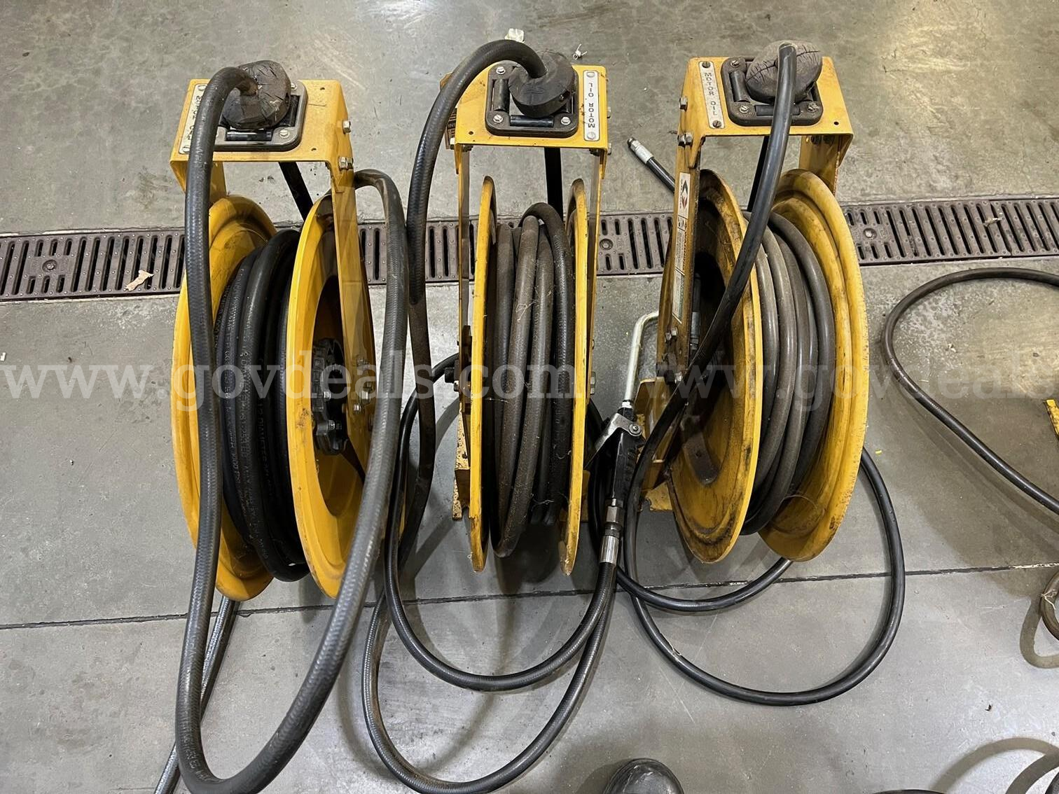 | Item: | Asset ID #5353 Three Motor Oil hose reels previously carried various fluids or air. |