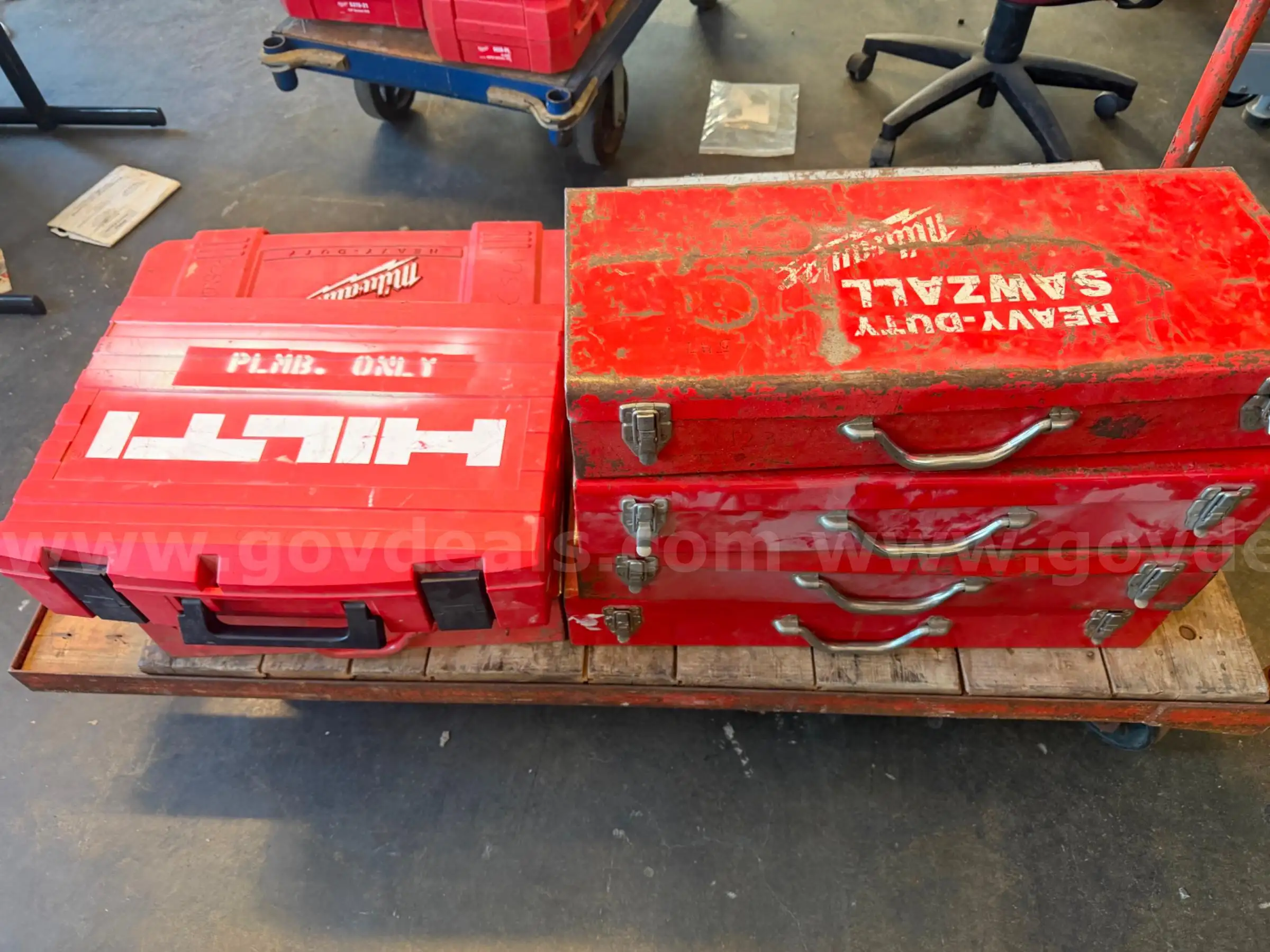 | Item: | Lot of 9x Milwaukee & Hilti Sawzall Reciprocating Saws with Toolboxes |