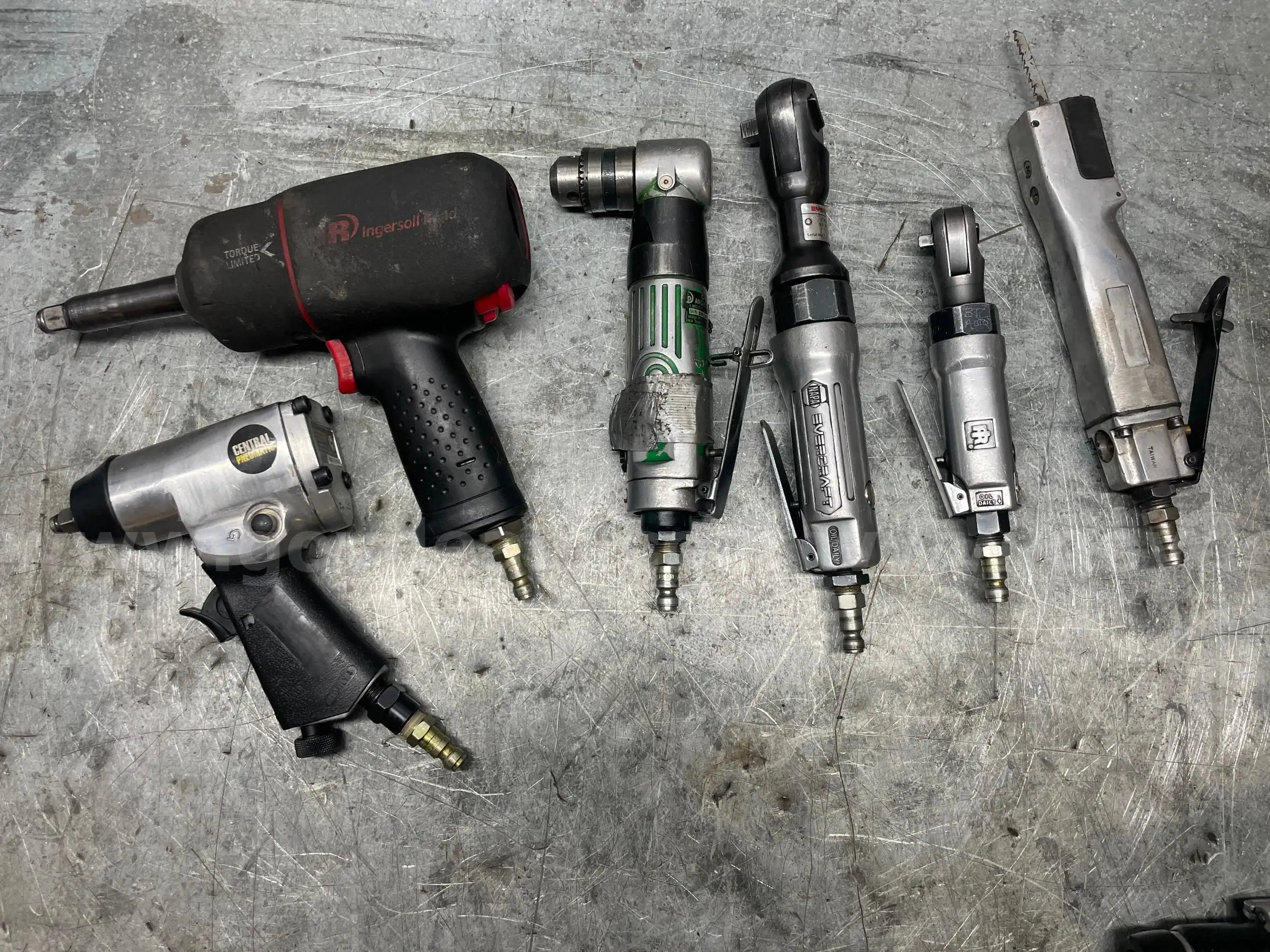 | Item: | Six (6) Miscellaneous Pneumatic Tools - Impact Wrench Ratchets Drill Saw |