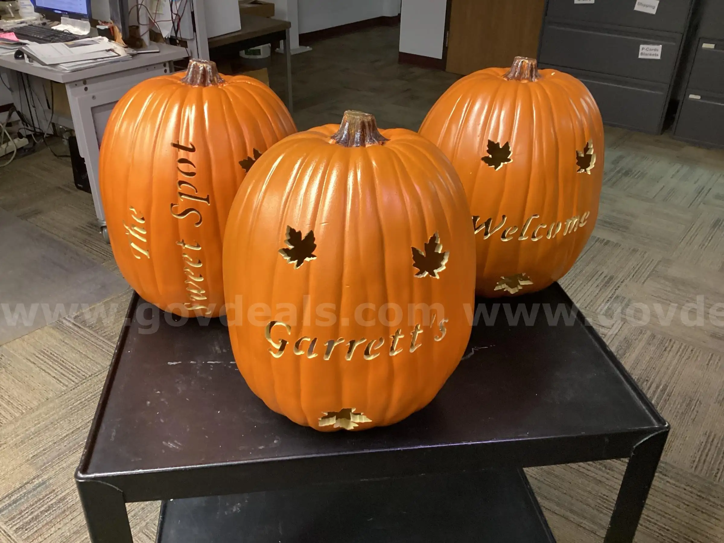 | Item: | Set of 3 Custom Carved Faux Pumpkins Garrett’s Sweet Spot & Welcome |