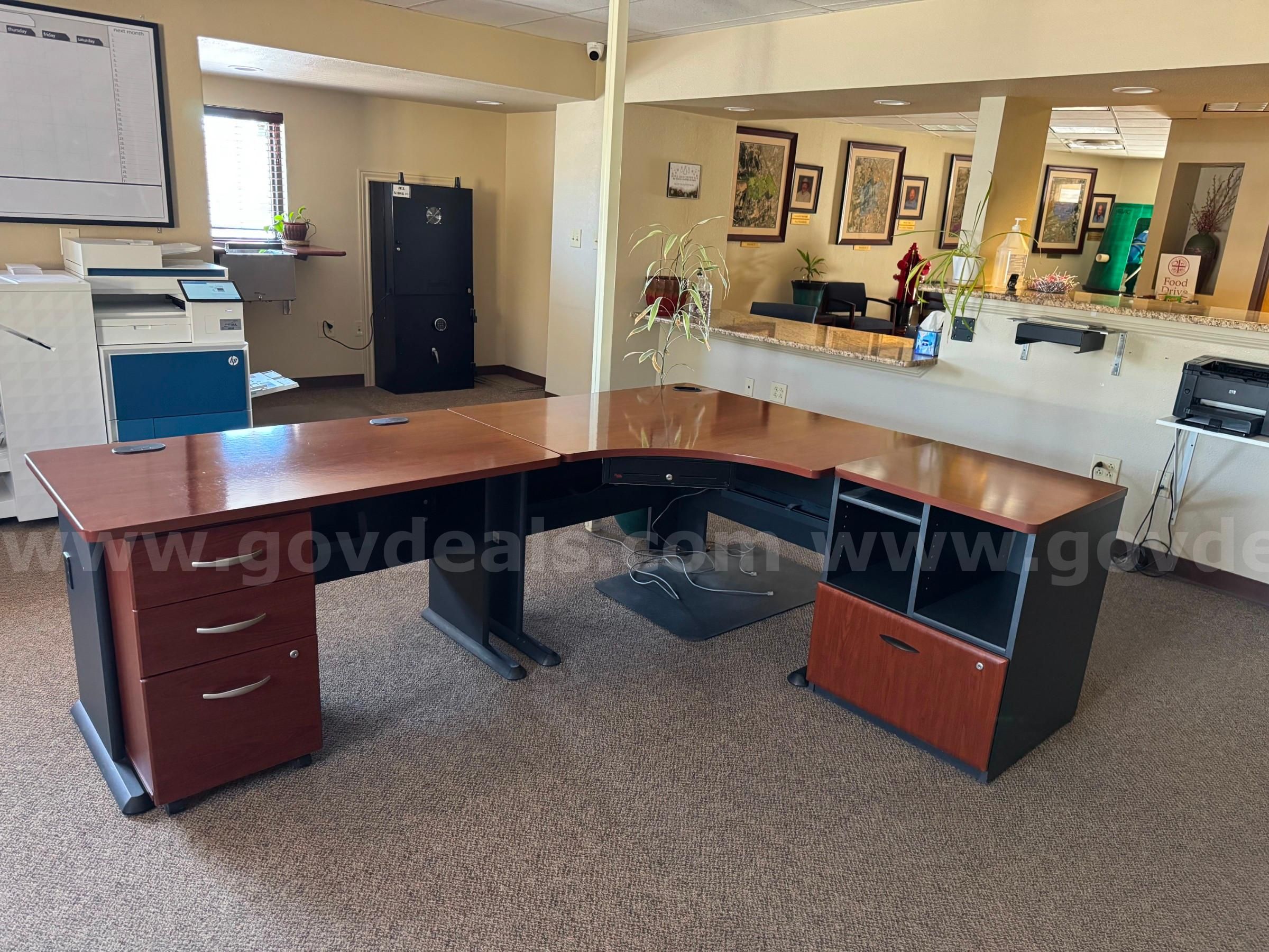 Item: | L- shape desk with 3 drawer cabinet on casters and an adjustable cubby. |