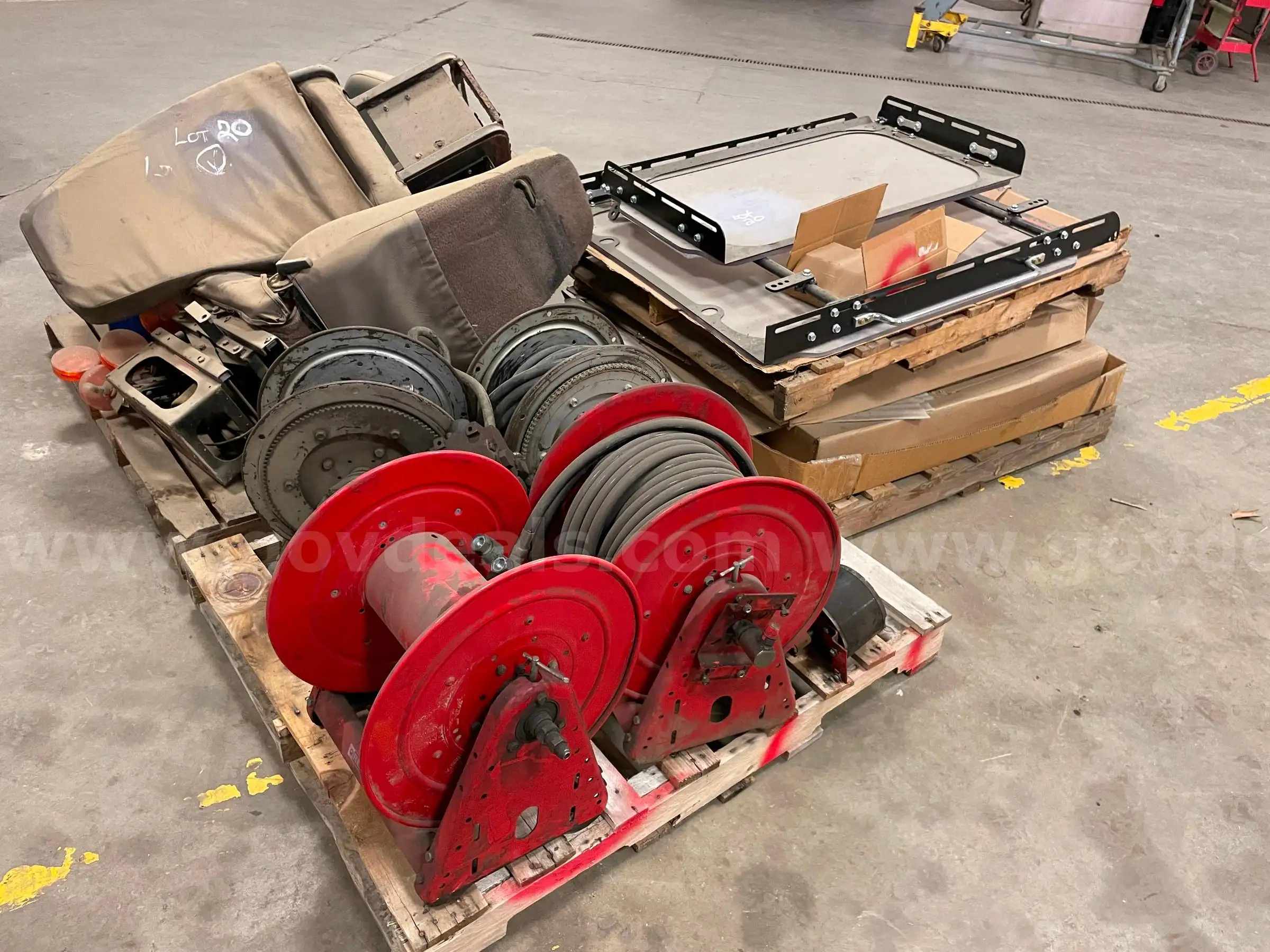| Item: | Lot of HD Equipment Glass Panels Seats and Hose Reels |