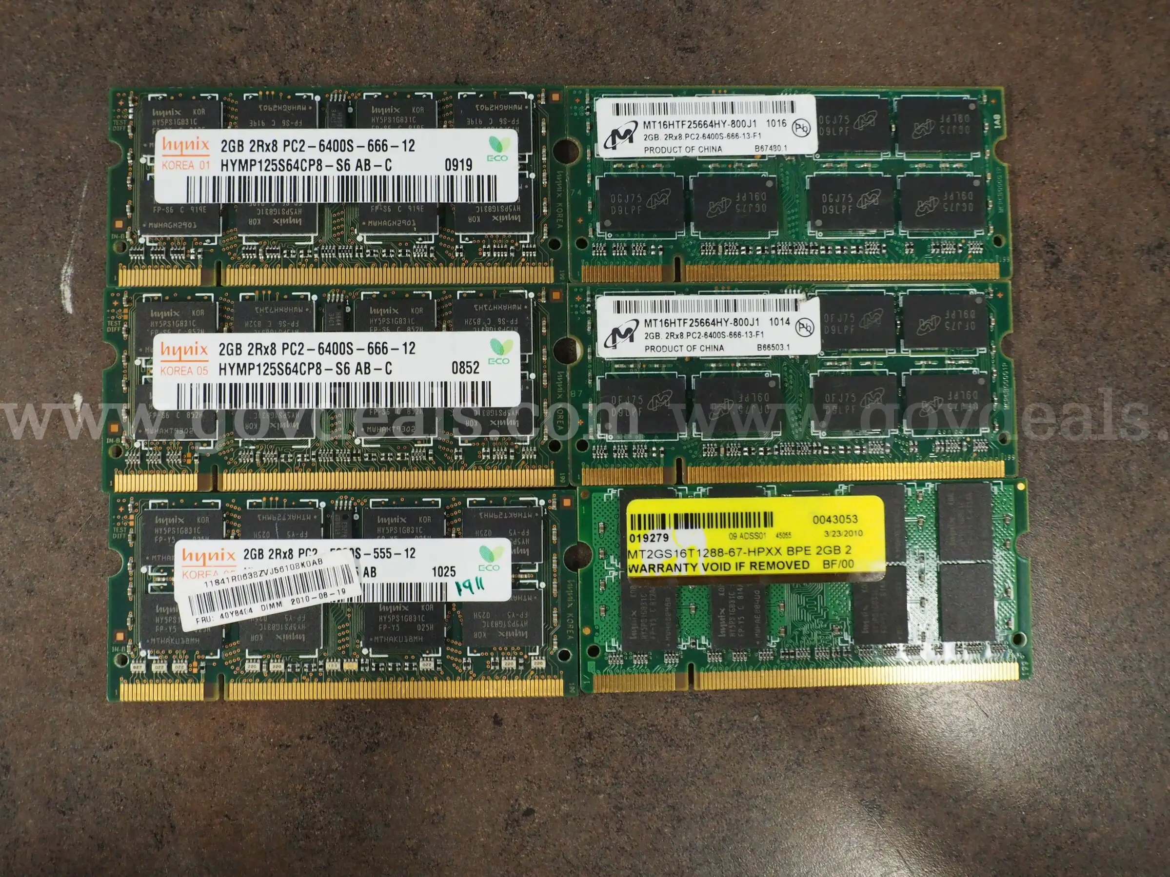 | Item: | Lot of 6 Assorted SO-DIMM 2GB 2Rx8 PC2 6400s |