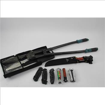 | Item: | Winchester Bowie Knife, Humvee Folding Knife, And More Knives, 7 Pieces, With 24" Bolt Cutters |