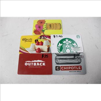 | Item: | Outback Trader Joe's Starbucks Chipotle The Cheesecake Factory 5 Pieces |