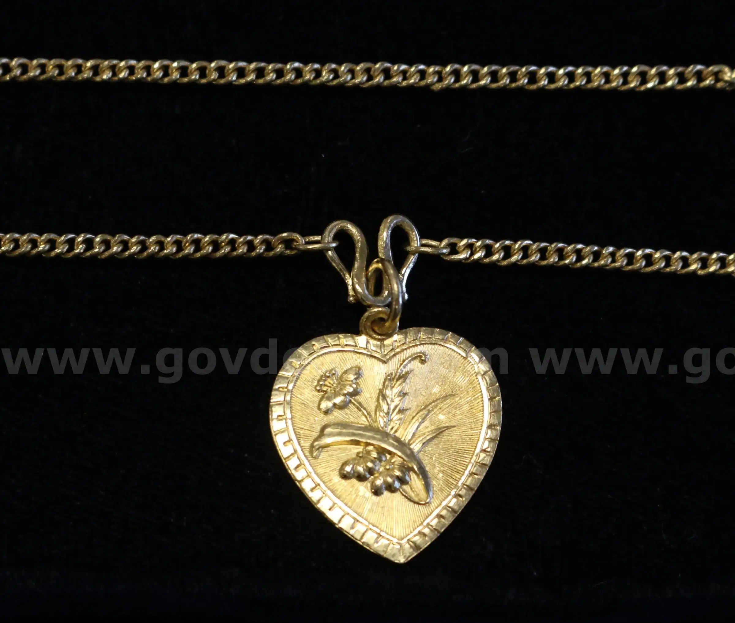 | Item: | 23K Yellow Gold Link Design Necklace W Heart Floral Design Pendant 18.3 Grams |