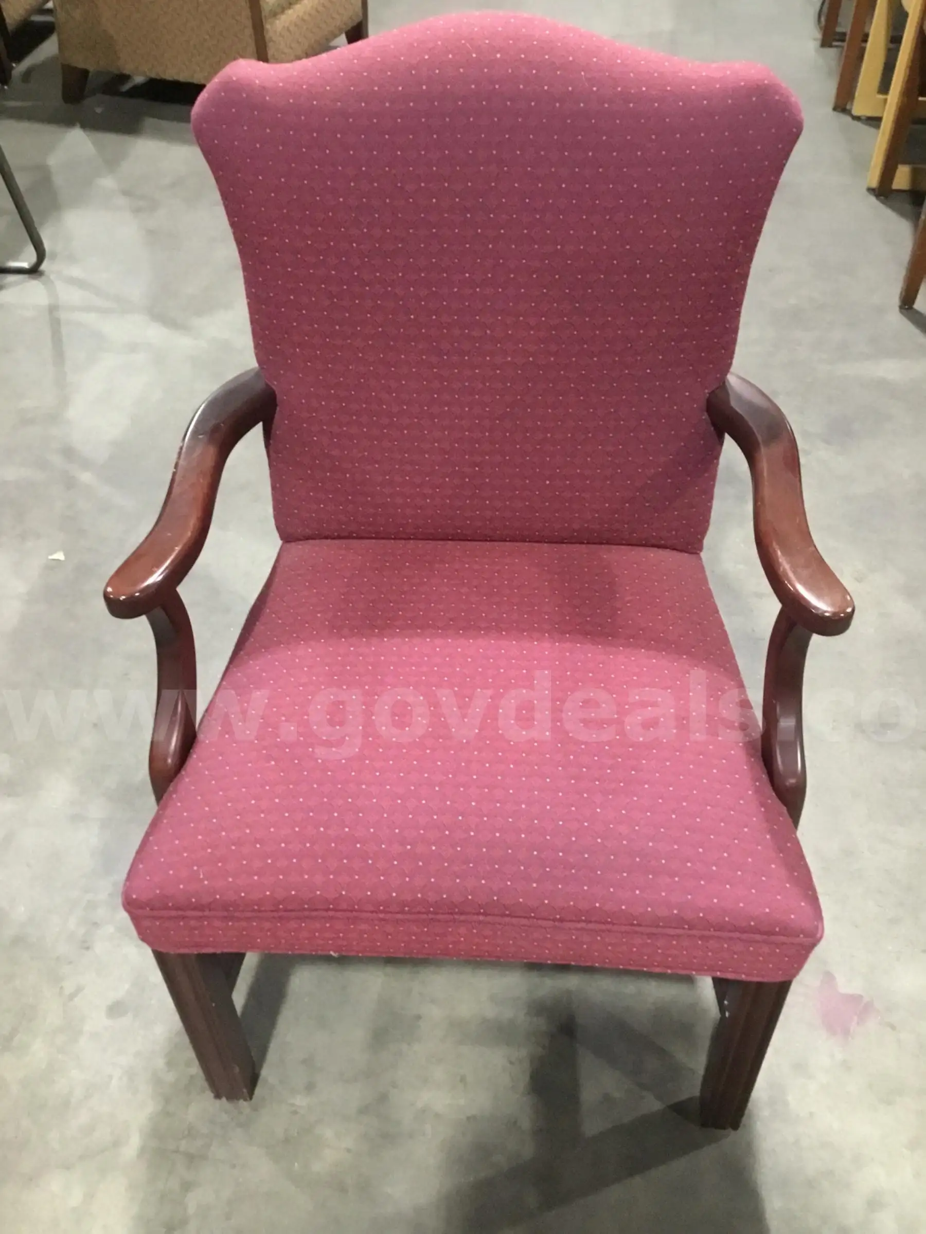 | Item: | Burgundy chair with dark brown armrests “DH” |